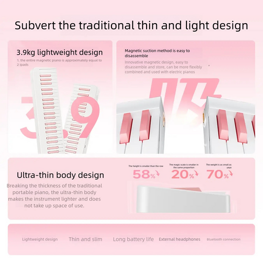 BETSY B151 folding electronic piano white pink key 61 keys beginners for students with adult professional multi-function portable electronic piano for home use